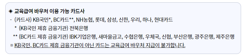 교육급여 바우처 이용가능 카드사