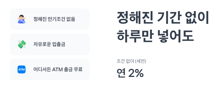 내가 어느정도 목돈을 가지고 있는데, 딱히 투자할 곳도 마땅치도 않은데 그렇다고 금리가 낮은 예금에만 넣어 놓기 아쉬울 때 이 파킹통장을 사용하시면 좋습니다. 하루라도 입금을 해놓으면 하루치 이자를 받을 수 있기 때문이죠.